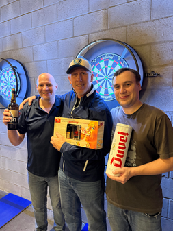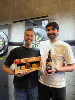 In de A-ronde werd het al snel duidelijk: wie geen 65 gemiddeld gooide, mocht stilaan beginnen hopen op een mirakel. Vier spelers staken er net dat tikkeltje bovenuit: Lander (4e), Phille (3e), Kevin (2e) en uiteindelijk onze winnaar Steve. Het waren spannende en hoogstaande wedstrijden, met in verschillende duels matchpijlen voor elk van hen. Iedereen rook de finale, iedereen had zijn moment⦠maar er kan er maar één de winnaar zijn. Proficiat, Steve!